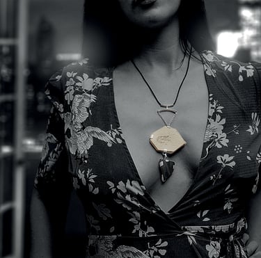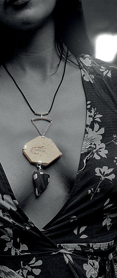 El Azabache, un material milenario lleno de historia y significado que ella misma extrae con gran respeto por su entorno, es transformado en piezas modernas y elegantes que escapan de lo clásico.