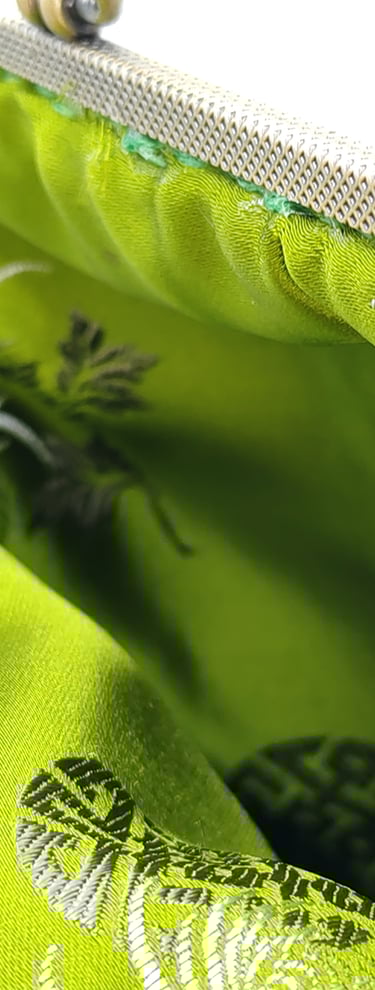 One of the standout features of her handbags is the ingenious use of different fabric patterns on each side and the interior, creating a surprising contrast of textures and colors that give each piece an asymmetric beauty with a unique and distinctive identity.