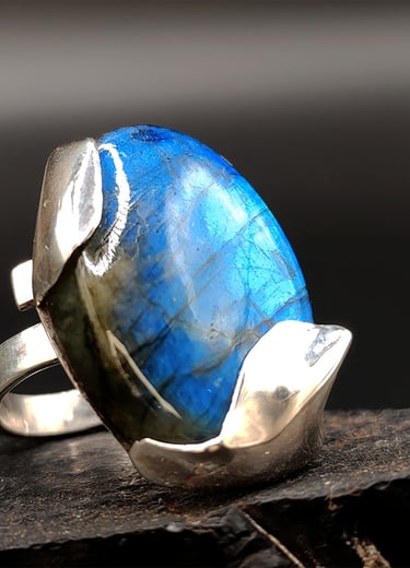 Carmen uses a wide range of precious materials, such as silver, azurite, aquamarine, larimar, malachite... but it is worth noting how she has reimagined the use of Jet.